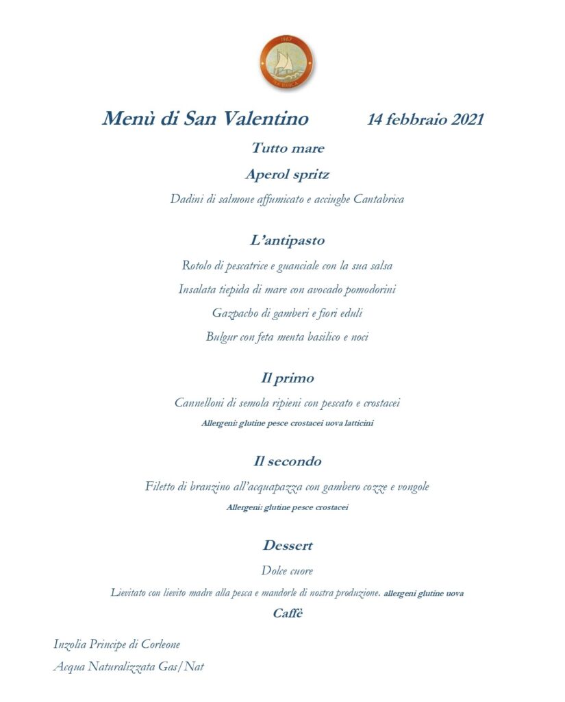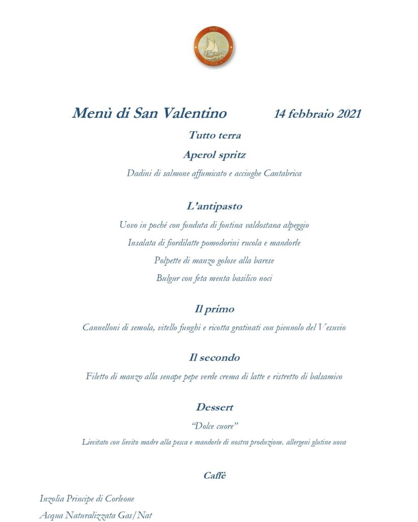 Un percorso guidato tra i sapori più ricchi del mare o tra quelli più decisi della terra, per accontentare te e la tua dolce metà. Che sia una scelta o l’altra, a pranzo nel nostro ristorante o che sia per cena con la formula da asporto o con la consegna a domicilio, una festa che porterà ad un lieto finale…..il nostro cuore di pesca e mandorle, un dolce lievitato di nostra produzione per concludere in dolcezza, un omaggio da parte della Famiglia Virgilio per porvi i nostri più sentiti auguri.